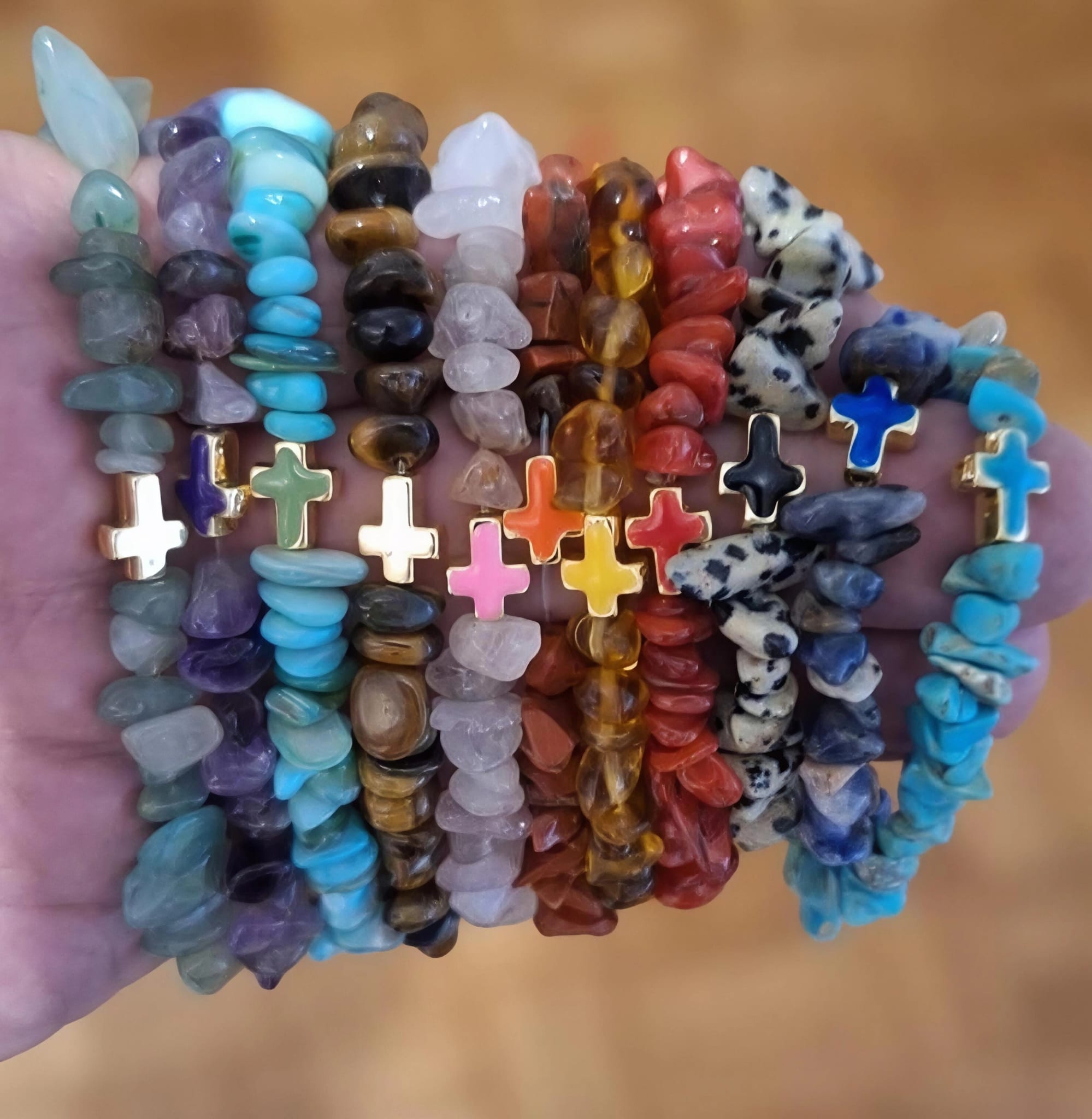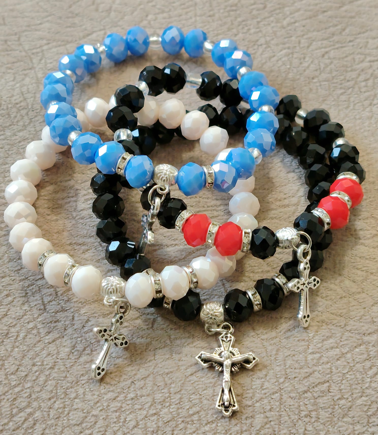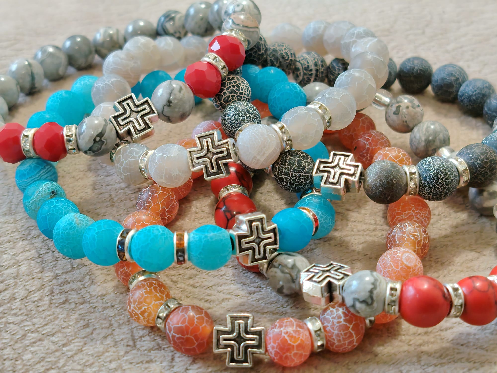 Наше наруквице израђене су од кристалних али и од дрвених и пластичних перли као и од перли камене лаве, пешчаних,каменчића итд , биране само од највећег квалитета. Радимо и плетене наруквице од шујташа од 2 мм, 1.5 мм и 1 мм.Наруквице правимо са металним Крстом као и са дрвеним Крстом, са медалјоном Иконе и разне друге.