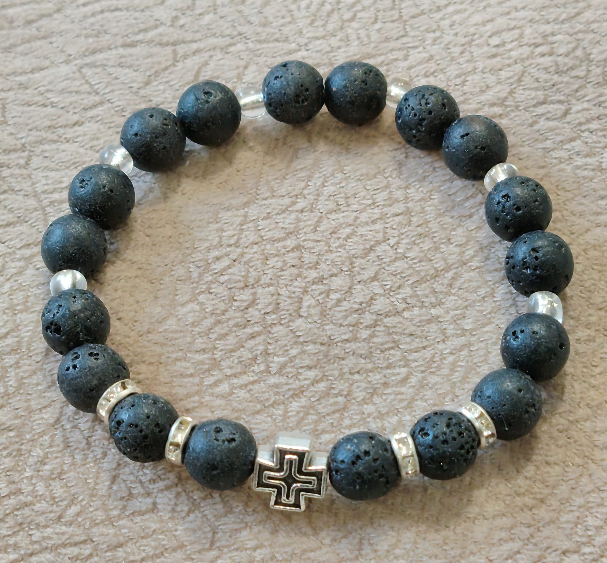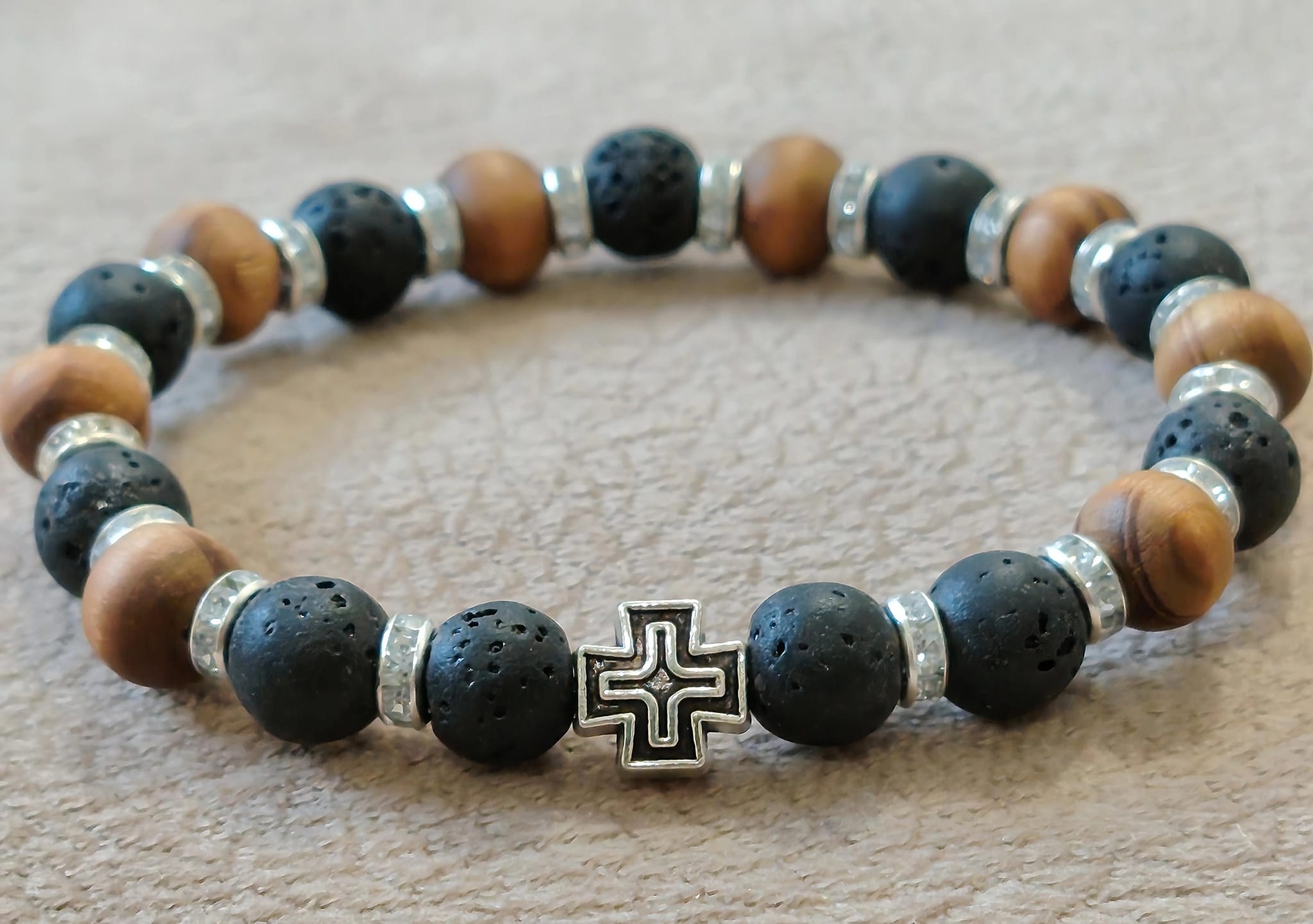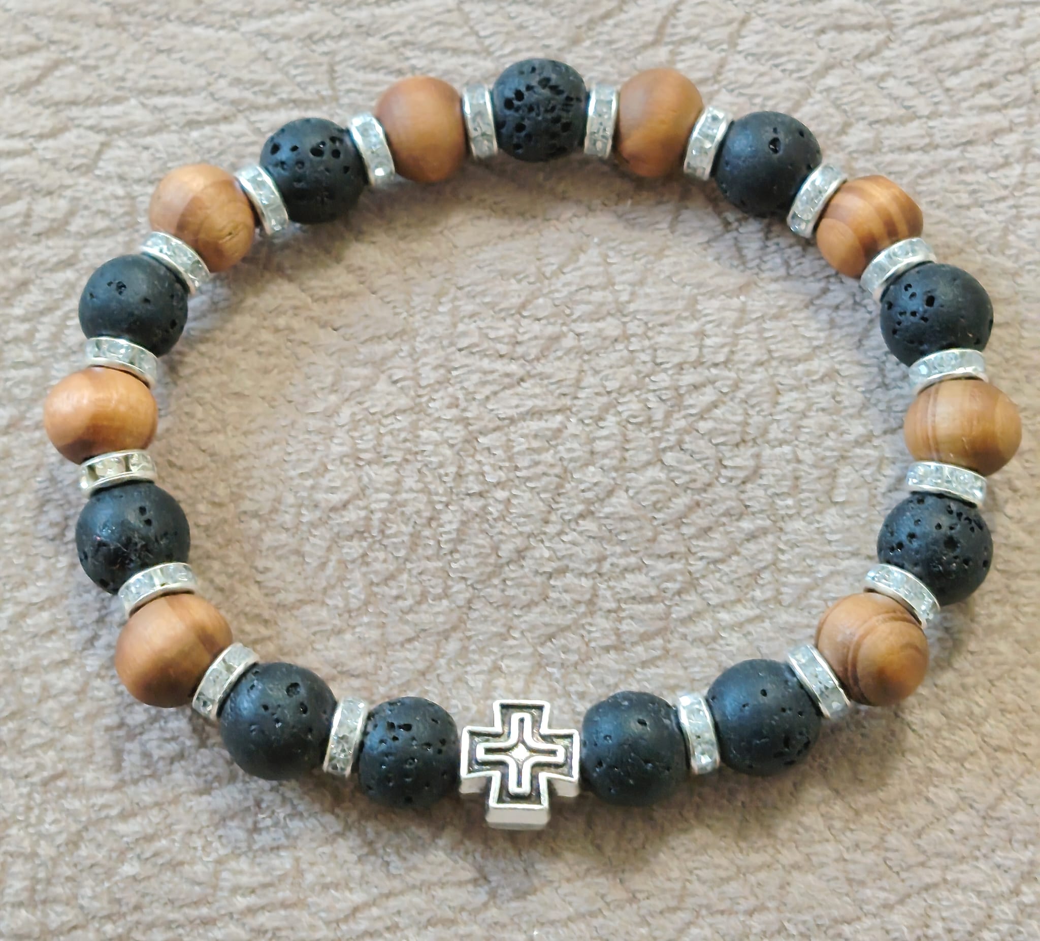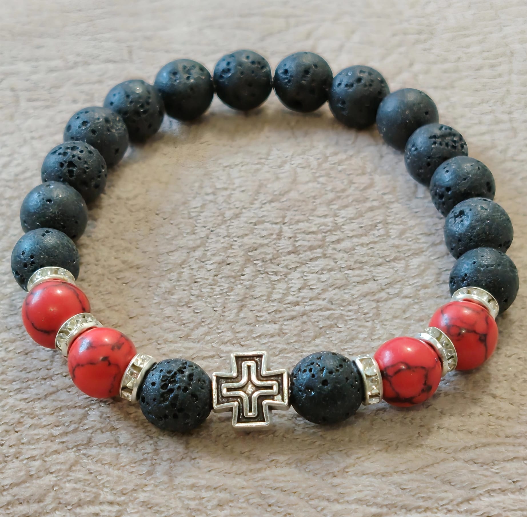 Низана наруквица од перли Камена Лава од 8 мм и 6 мм.