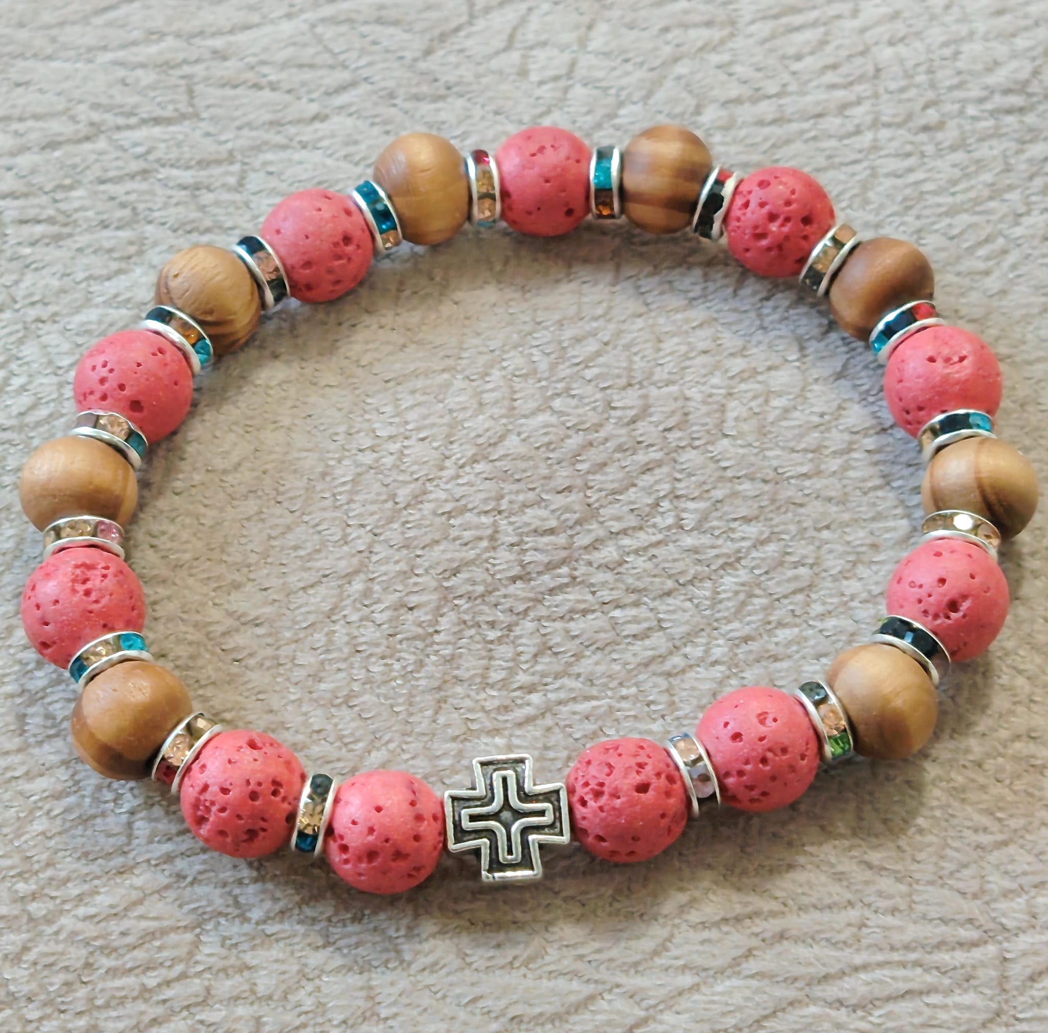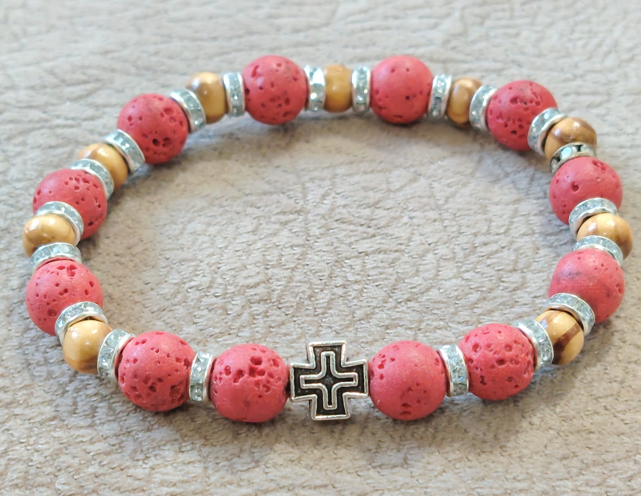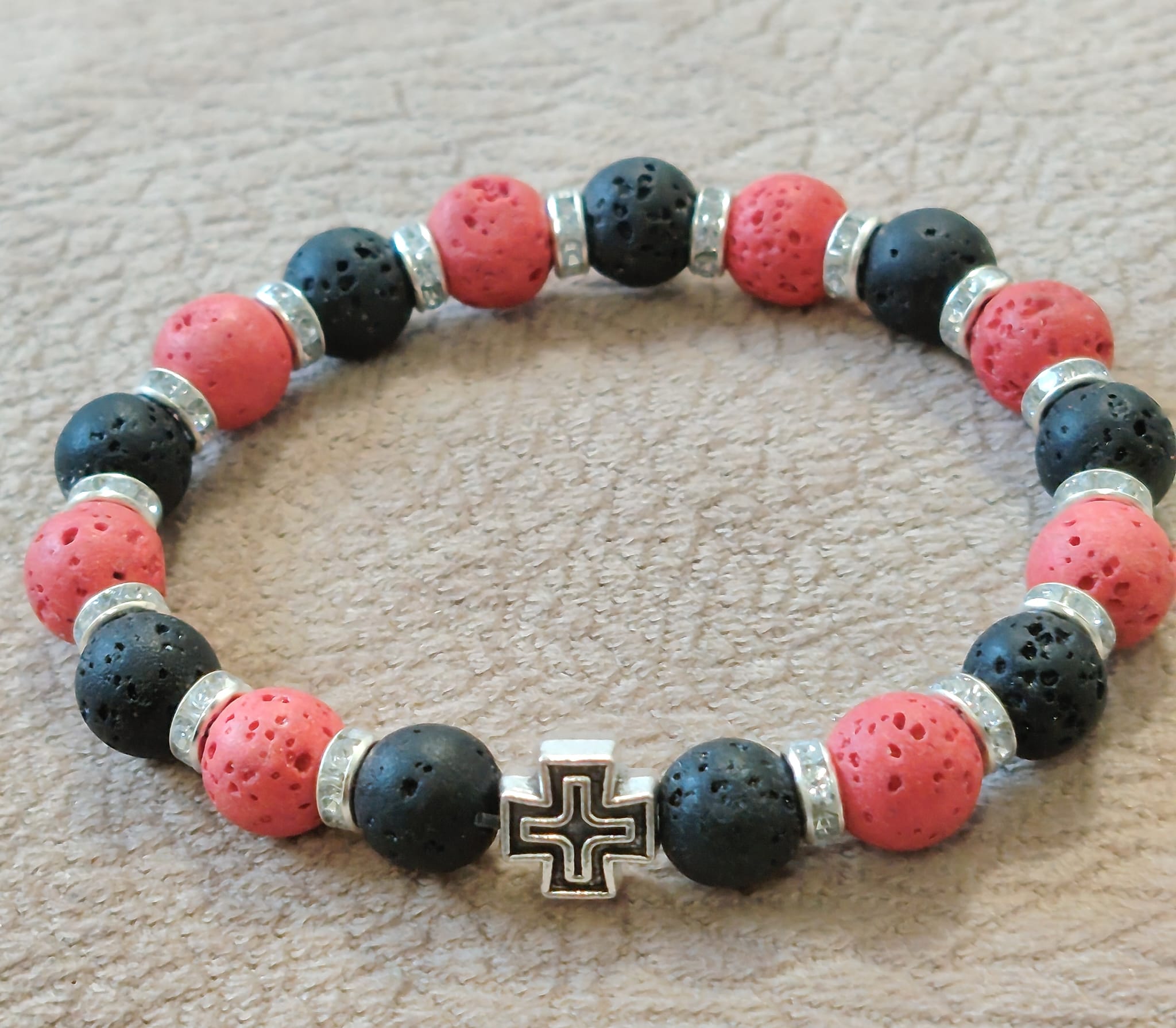 Низана наруквица од перли Камена Лава од 8 мм и 6 мм.