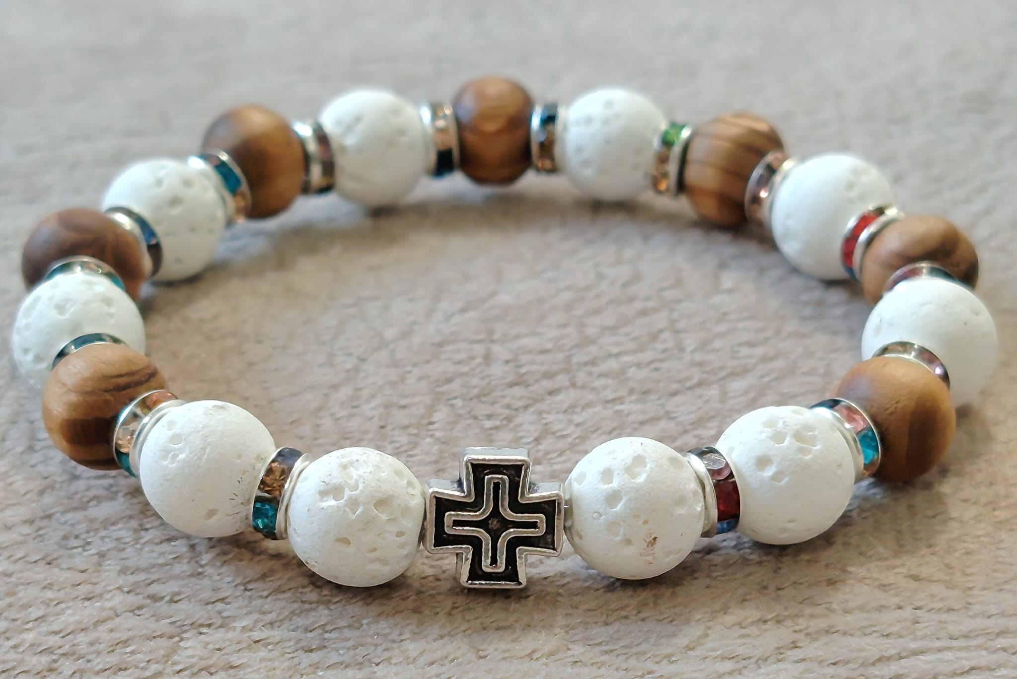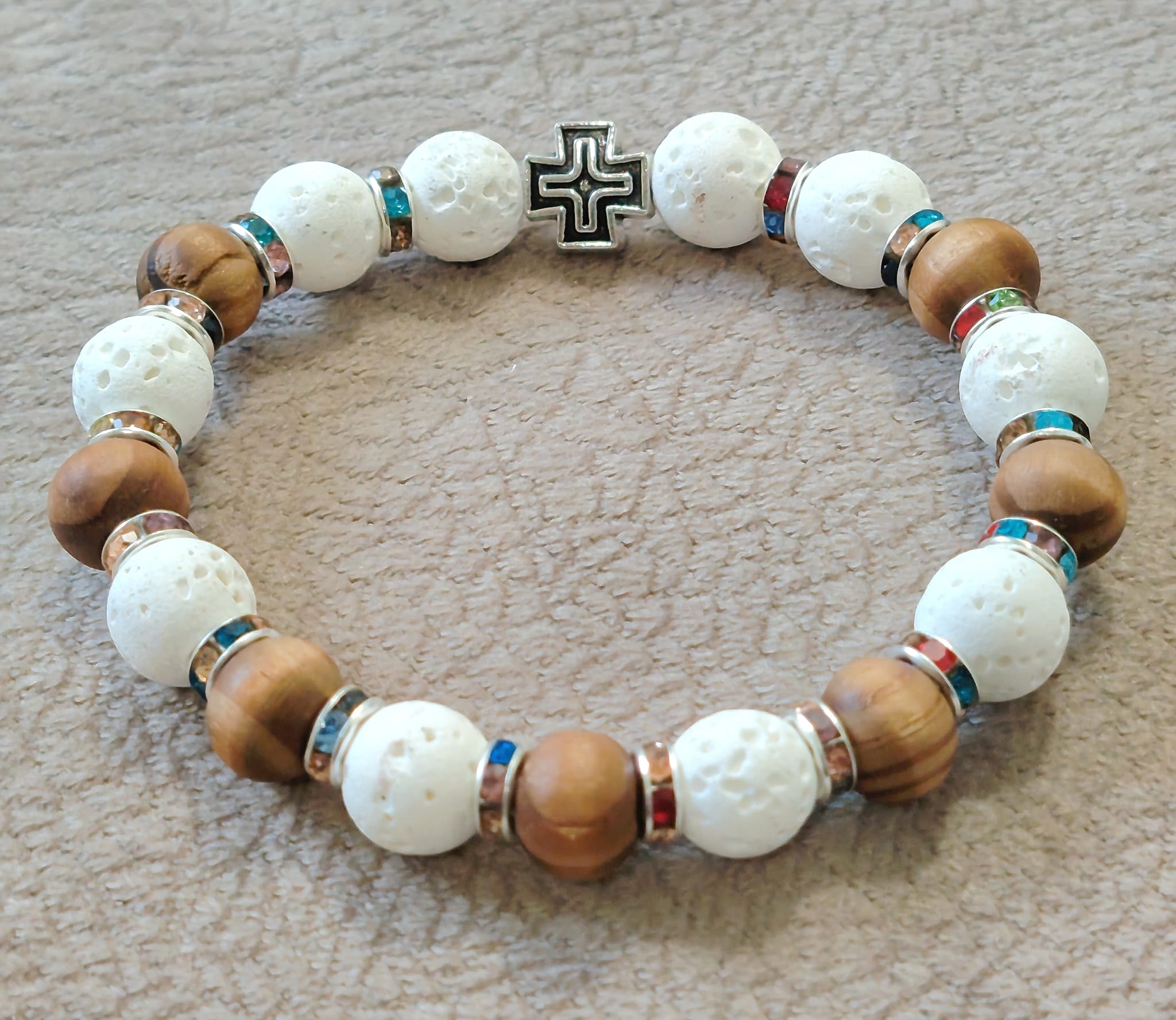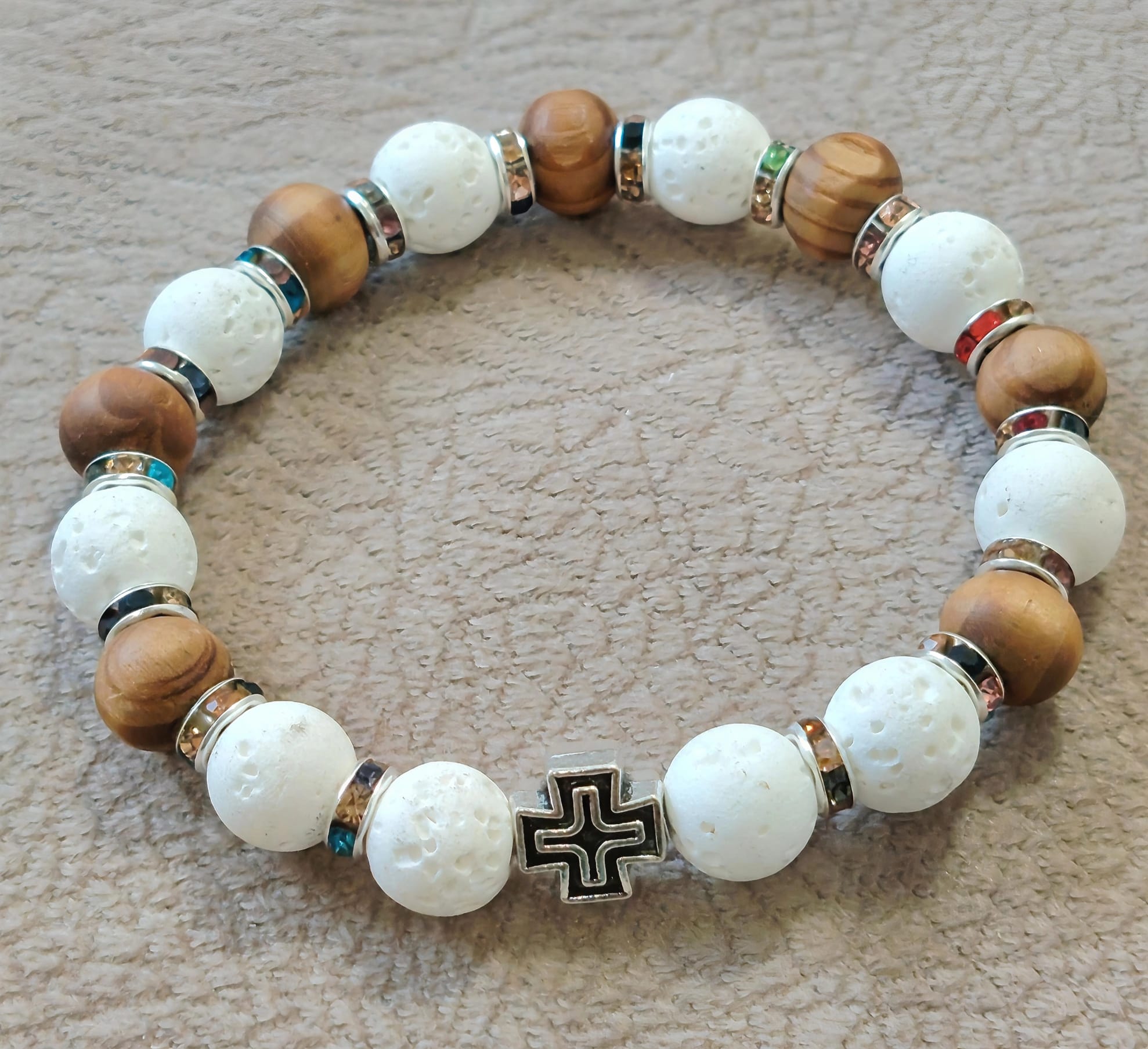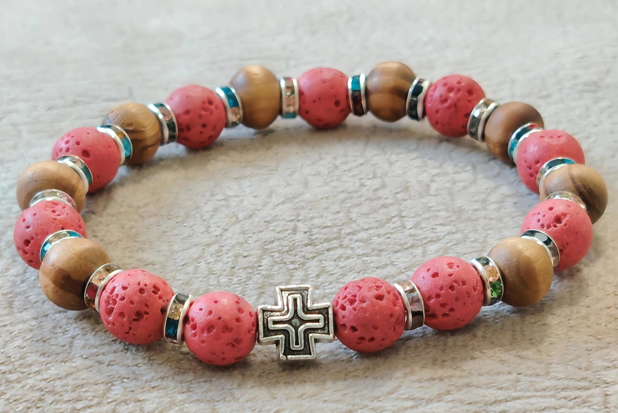 Низана наруквица од перли Камена Лава од 8 мм и 6 мм.