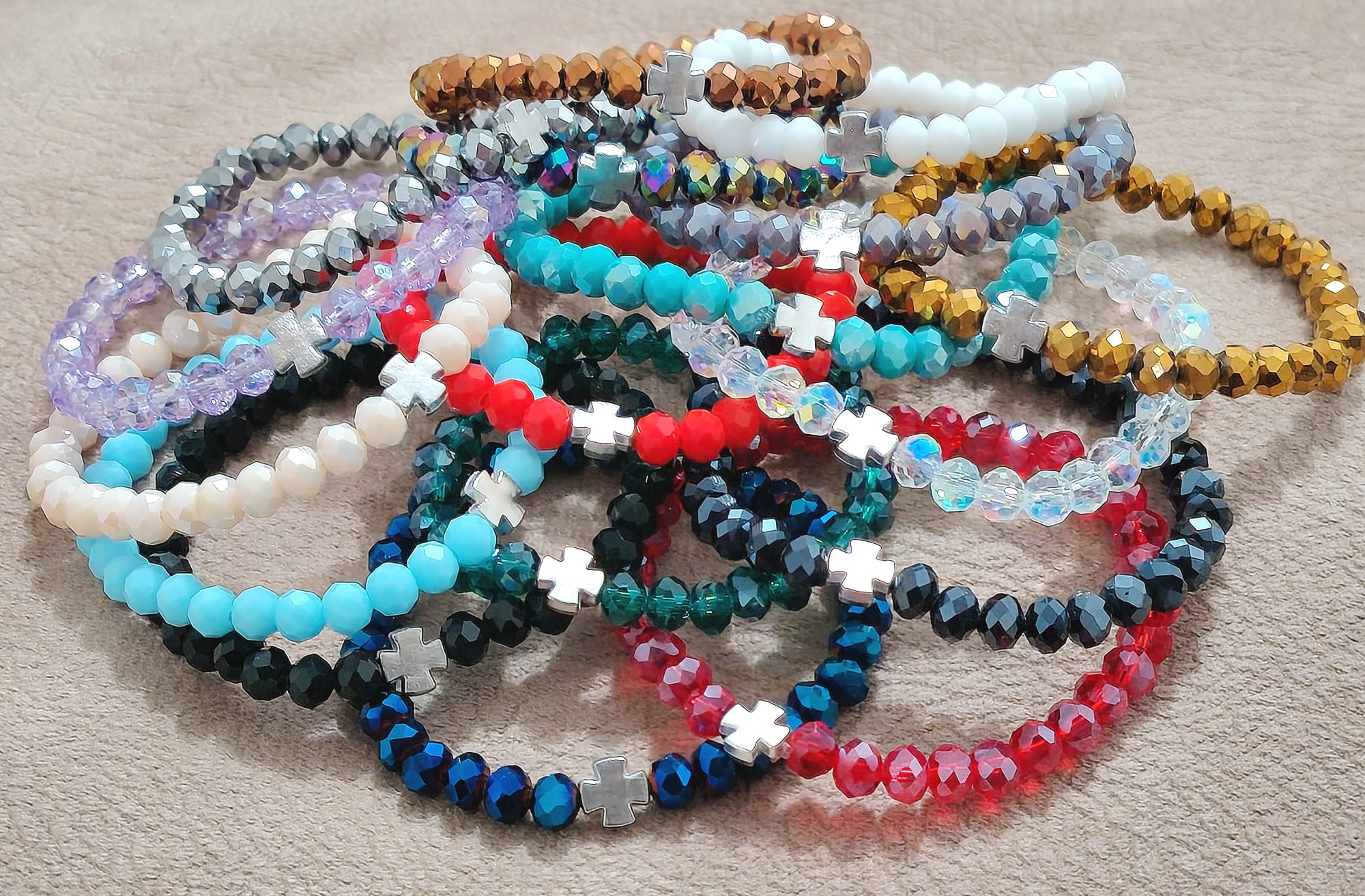 Низна наруквица од крисалних перли 8 мм, 6 мм, 4 мм, 2 мм .
