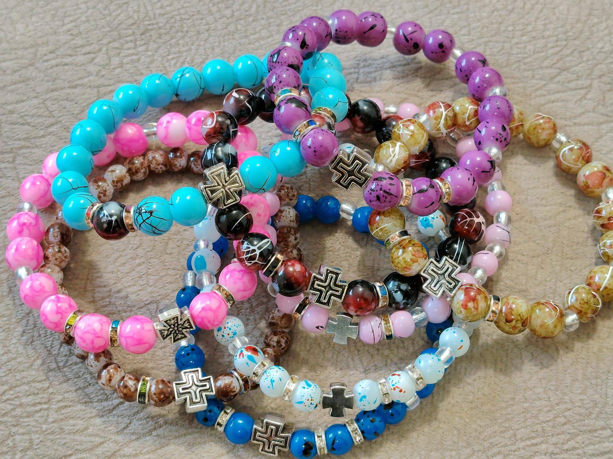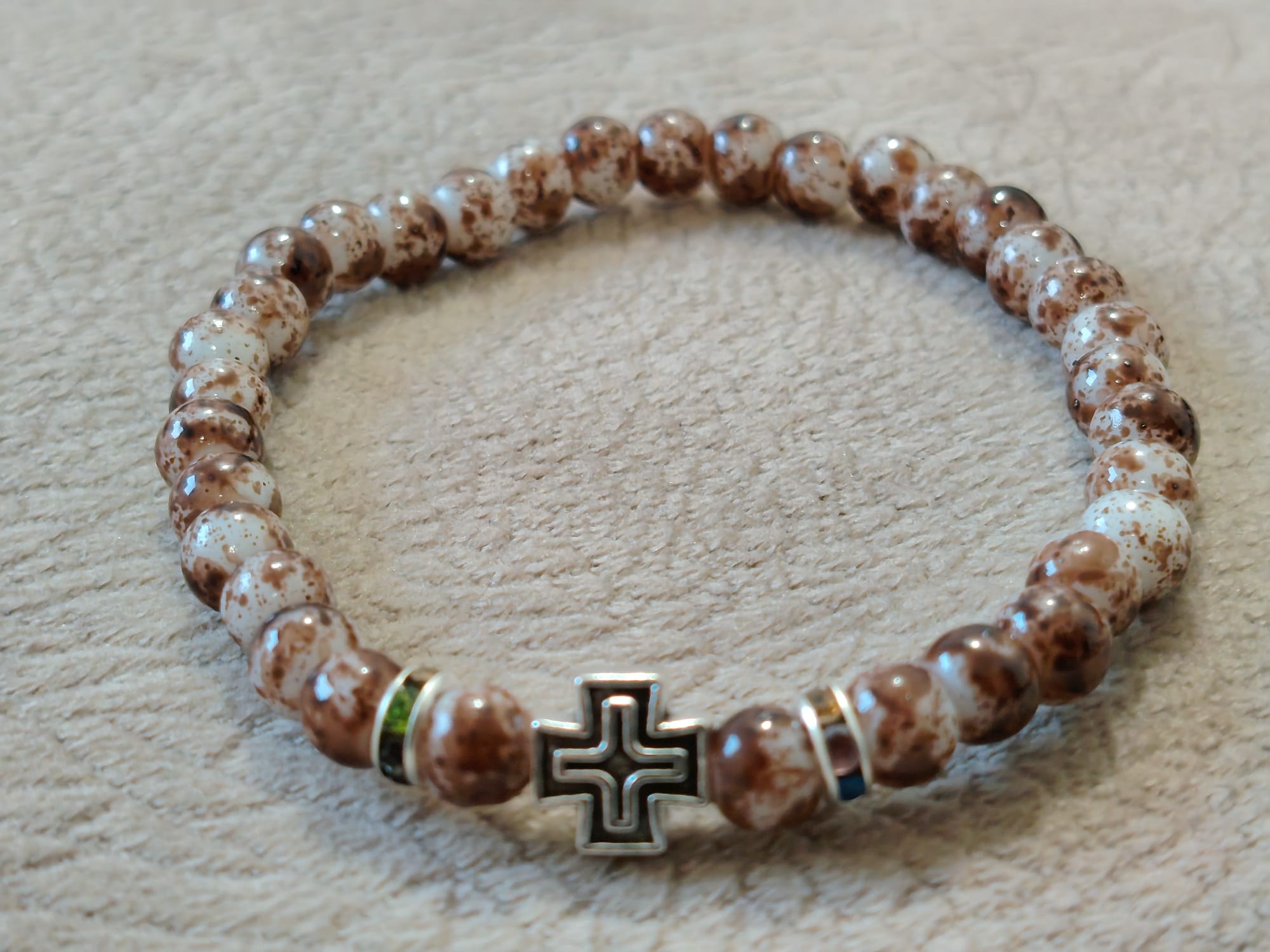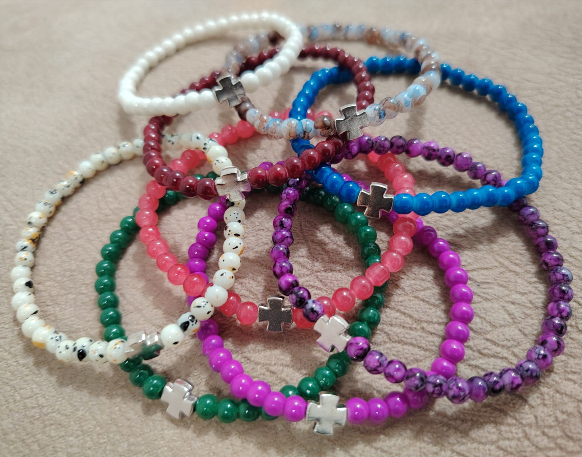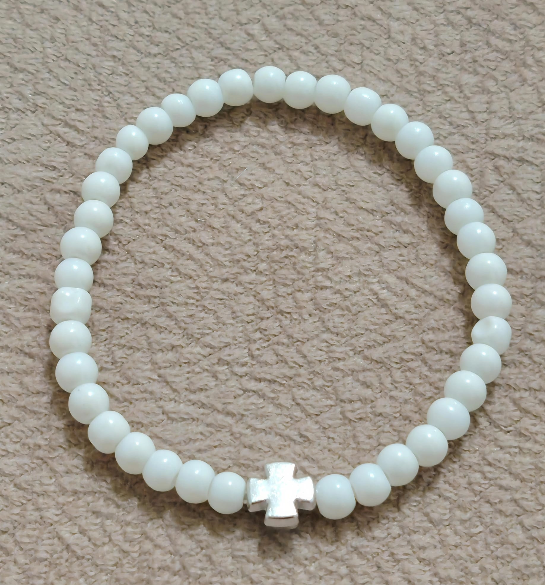 Наруквице од окуглих пери димензје 8 мм, 6 мм , 4 мм , са лним Крстом.