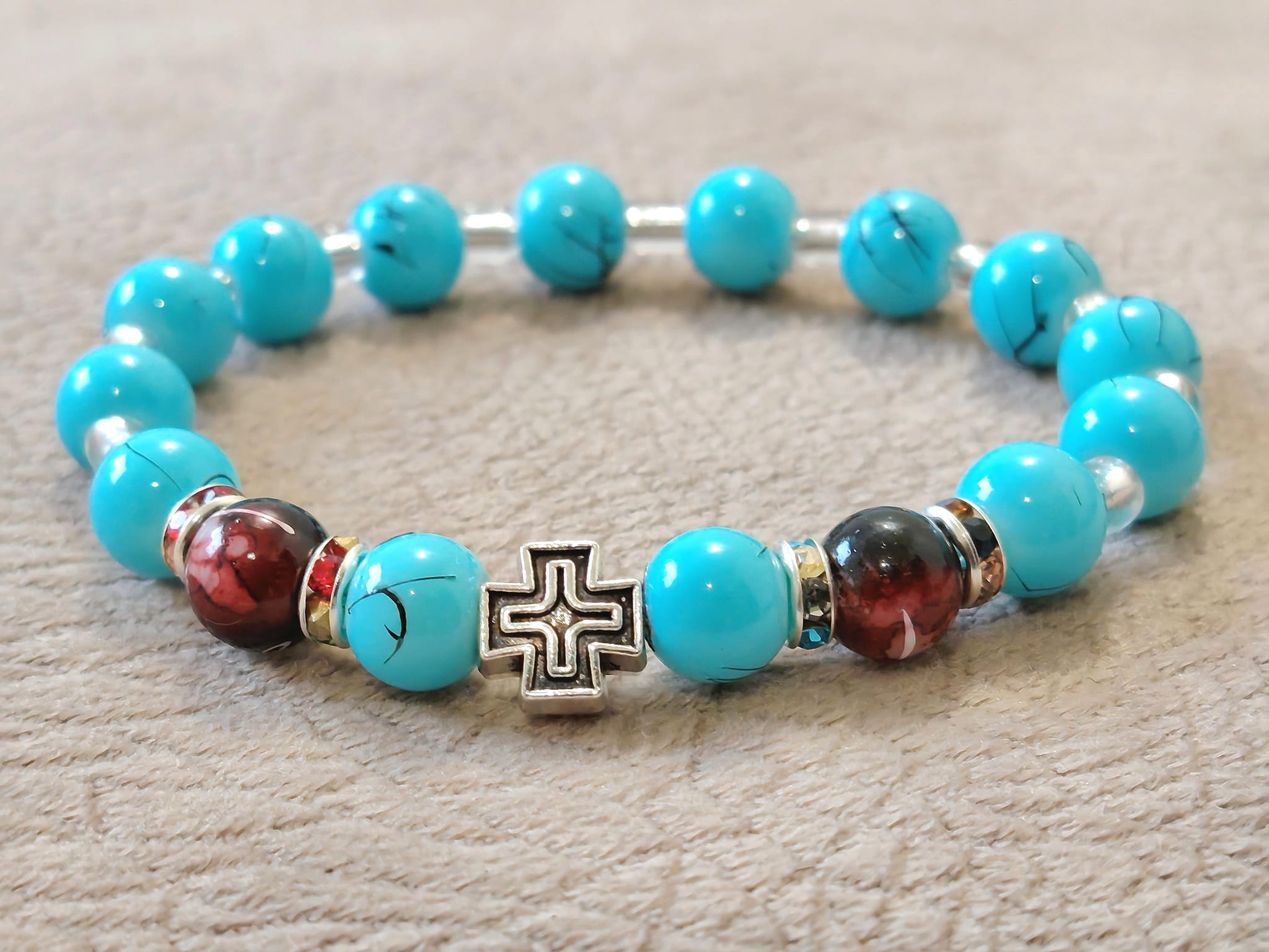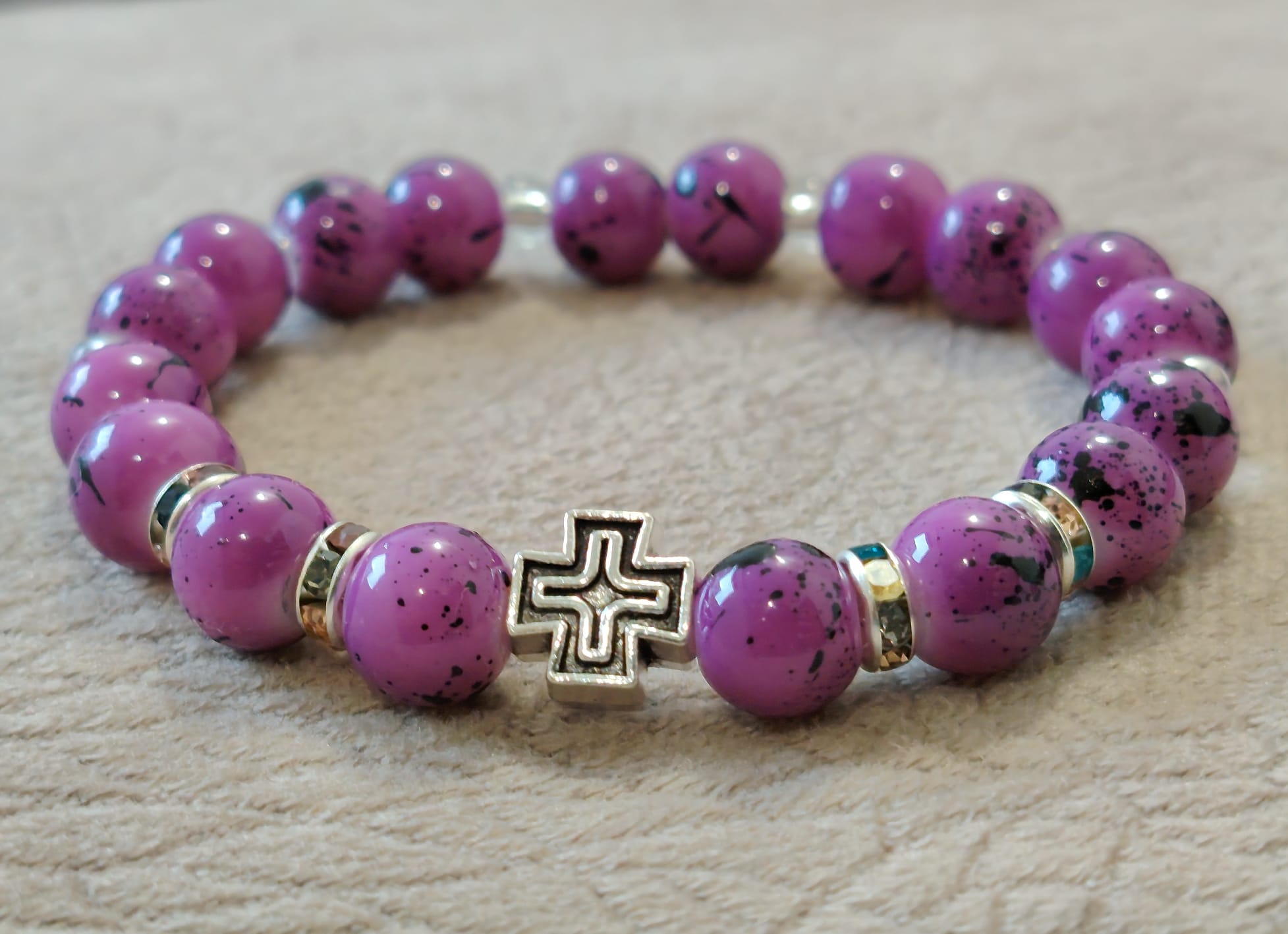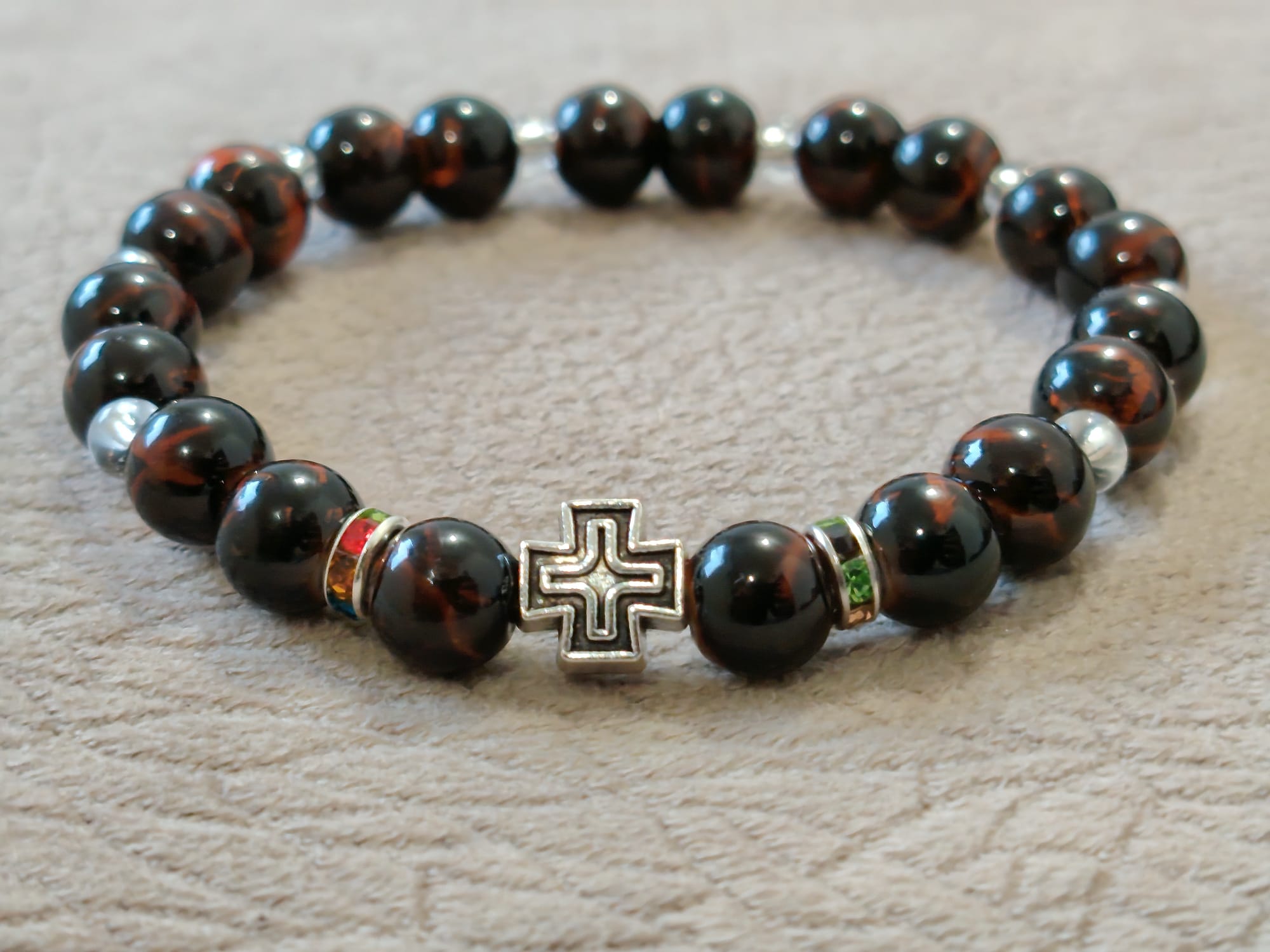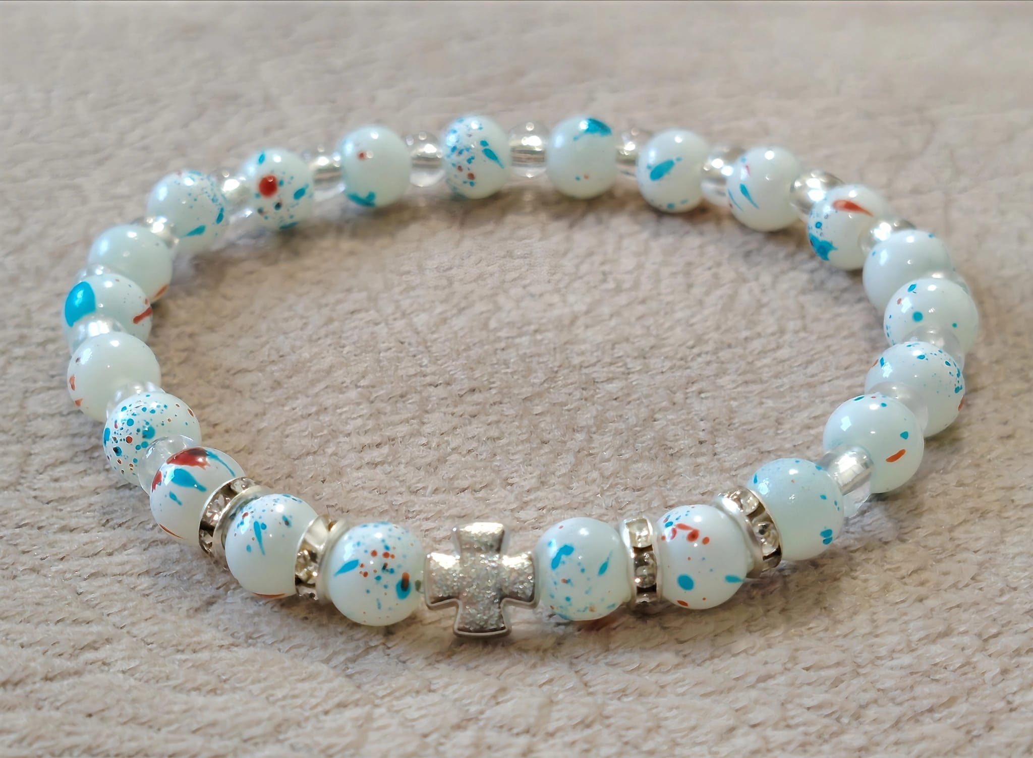Наруквице од окуглих пери димензје 8 мм, 6 мм , 4 мм , са лним Крстом.