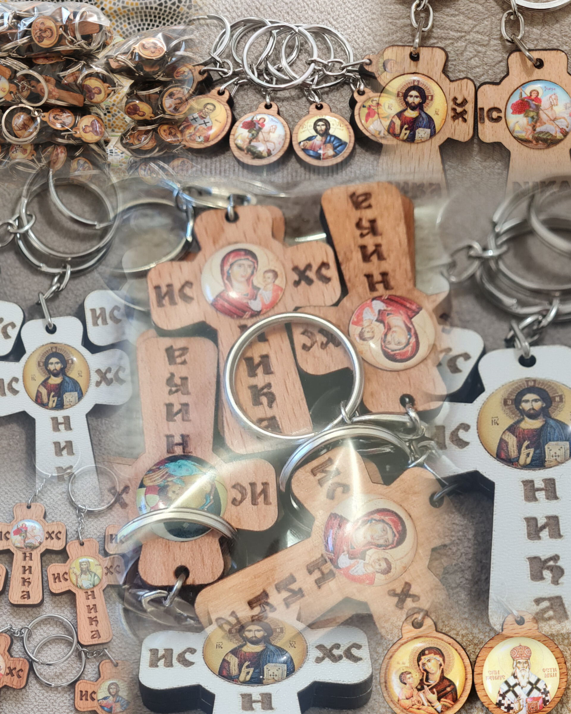Наши производи нису украси , они си благослов за дом и за личну молитву и заштиту, јел на производима су симболи наше вере, Икона ил Крстић .