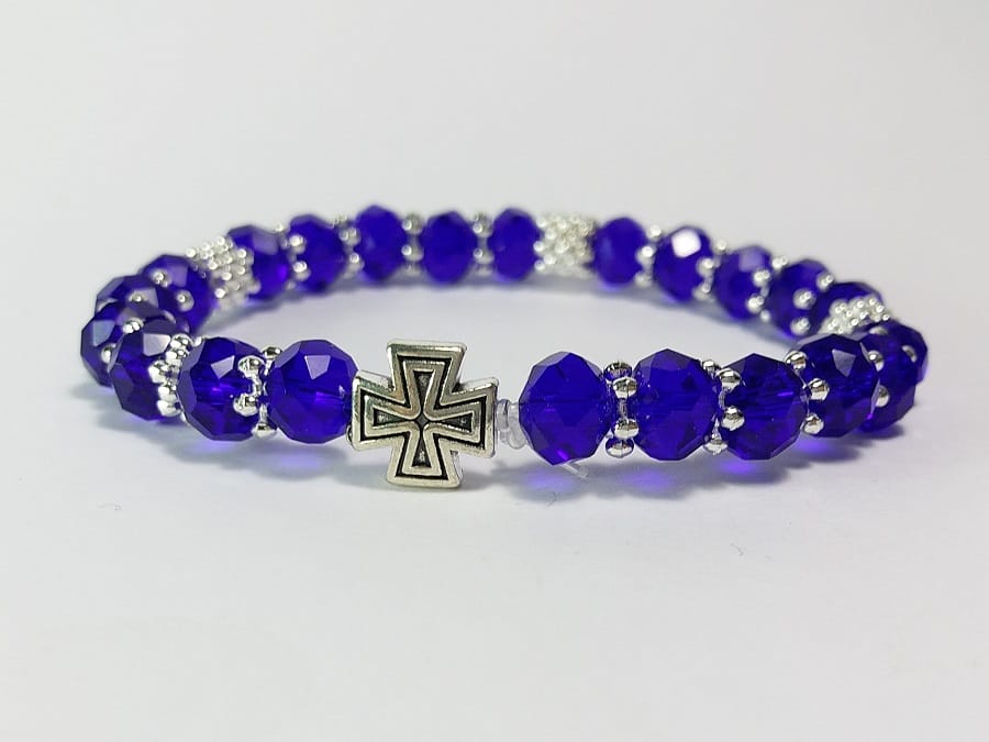 Nizane narukvice od Kristalnih perli, 8mm,6mm, 4mm na kojima je izmedu kormlo i sa metalnim Krstom